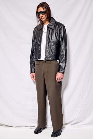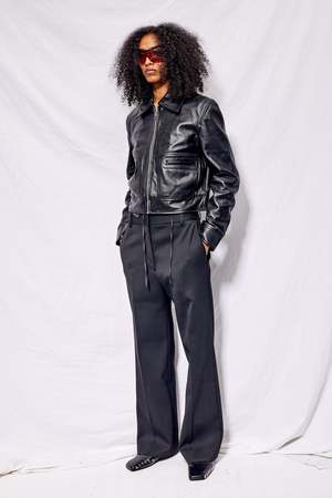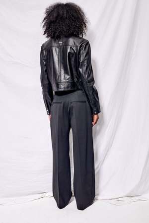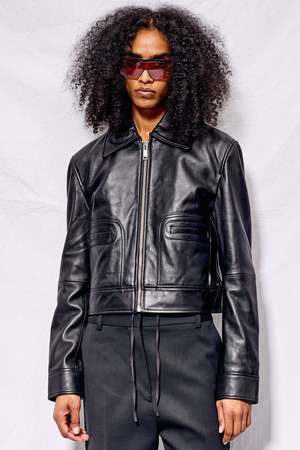 The Gable Jacket from DEADWOOD is a straight-cut, cropped leather jacket with a boxy fit. Features two front pockets at the waist and a front zipper closure for a sleek finish. Exterior: 100% recycled nappa leather Lining: 100% recycled plastic.