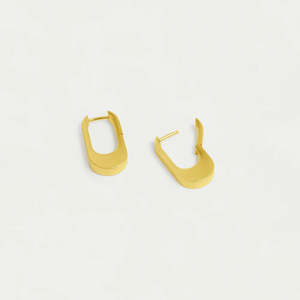 Versatile brushed-gold huggies with a refined U-shape and subtle weighted base. Wear them solo or layered across multiple piercings for effortless sophistication. Material: DD Signature brushed 18kt gold and high polish edges over high-quality brass. Length: 0.87" / 22mm.