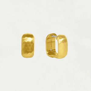 The classic huggie gets a new hammered finish, created by hand and inspired by the rough terrain of the Masai Mara. Metal: DD Signature Hammered 22-Karat Gold Finish Over High-Quality Brass. Length: 0.63" / 16mm Note: In some hinged styles, the closure may loosen over time. To fix this, gently push the post upward with your thumb until it aligns tightly with the clasp, restoring the necessary tension to keep it secure. Dean Davidson jewelry is handcrafted using high-quality brass and plated in gold or palladium with signature brushed and high polished finishes. Dean uses a combination of semi-precious and man-made gemstones that are meticulously sourced and crafted by master artisans across the globe.