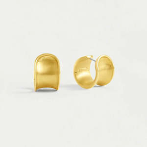 The Sol Huggie Hoops feature a concave brushed silhouette, comfortable hinge closure, and high-polished edges. Includes a hypoallergenic stainless steel post. Material: DD Signature Brushed Gold Plated Over High-Quality Brass with hypoallergenic stainless steel post. Length: 19.50mm. Dean Davidson's hoops are handcrafted using high-quality brass and plated in gold or palladium with signature brushed and high polished finishes. They use a combination of semi-precious and man-made gemstones that are meticulously sourced and crafted by master artisans across the globe.