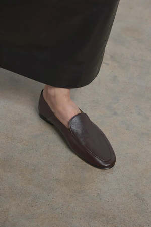 A soft slip-on loafer with a foldable heel counter for exceptional comfort. Features classic loafer details and a buffed leather sole. Runs small, select a full size up. If you are between sizes, select the next full size. Nappa leather upper with leather lining and insole. Single sole, buffed leather with black painted edges. Heel height: 0.8cm (0.3 inches) Made by hand in Italy.