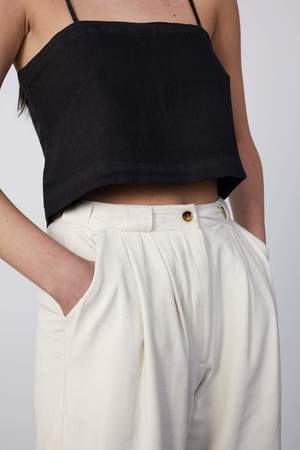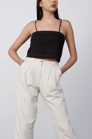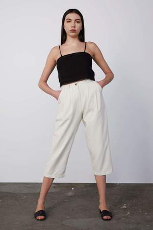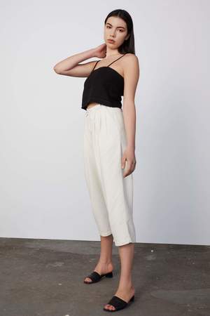 80% silk, 20% cotton Vintage inspired trouser Pleated front Made in Los Angeles Better than vintage. 80% silk, 20% cotton vintage inspired trouser with pleated front. Comments from the designer On a thrifting expedition I found the most perfect pair of vintage trousers. I zipped them up and I knew it was love. I wore them every day until they were threadbare and have mourned the loss ever since I noticed the first irreparable hole. Im really glad I had the opportunity to replicate these perfect pants so we can all enjoy the perfection that is the Rachel trouser. We used a garment dye finish on the silk/linen which creates a gorgeous lived-in look and feel, just like the original pants these are based on (but better) Care Instructions Machine wash on the gentle cycle in cold, hang to dry. Press on lowest heat setting. Fit Notes The pleats provide room for movement without adding volume. The waist sits right under your ribcage so dont forget to measure and use our fit guide below. The leg is roomy for an effortless vibe, which makes them as easy to style as they are to wear. Please note - The model has very long legs (as most models do) the inseam will be considerably longer on frames shorter than 5'10"