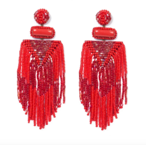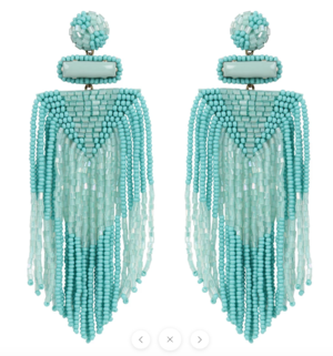 The perfect finishing touch to any outfit, Deepa Gurnani's handmade Jody Earrings are, without doubt, a true statement earring. Lightweight and hand embroidered. - Glass Beads - Brass Chain - Enamel - Vegan Leather Backing - Size: Length 4" | Width 1" Please note: Due to the handmade nature of Deepa Gurnani's collectsion, the colors and patterns may vary slightly from the image shown. Minor differences enhance the beauty and uniqueness of each style.
