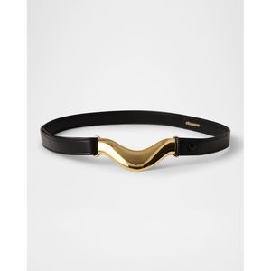 Experimental and minimalist by design, the curved buckle was inspired by the brass designs of Romanian modernist sculptor Constantin Brncui. The Brancusi belt is designed for those with a sensibility to design, interested in making a statement and seeking objects that impart character. The buttery soft leather allows for the belt to be worn relaxed around the hips or cinched to accent the waist. The soft adjustable belt strap is an ode to 1970s designwhen belts were more than an accessory and often the centerpiece of an outfit. The belt width (1 inch) fits most belt loop sizes or can be cinched and tied on its own. The metal accent is a curved "V" shape design that forms a stylish, minimalist centerpiece. Crafted from zamak and coated in 24K gold, the hardware adds a touch of opulence to every ensemble. Smooth sheepskin leather, sourced from Italy and certified by the Leather Working Group (LWG), reflects a dedication to impeccable quality, sustainability, and ethical sourcing. Each Dhanche belt uses luxurious skins with unique tonal variations, marks, or veins that are natural features and should be considered characteristics of your product, not imperfections. To ensure your belt ages beautifully, avoid exposing it to water, oil, perfume, or cosmetic products. If your belt comes into contact with water, gently blot it with a soft, light-colored absorbent cloth.