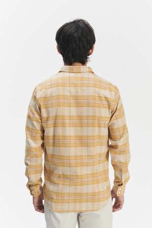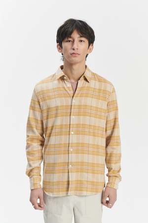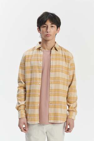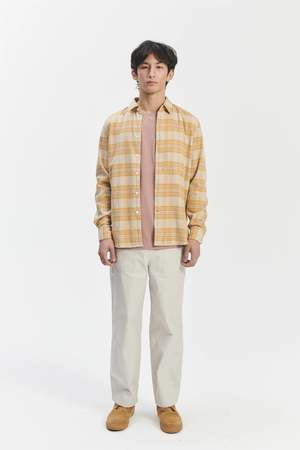 We very much like this ultra soft feeling fine Japanese yellow chequered corduroy called baby cord. The cords are so fine they resemble the structure of velvet. Composition: 100% Cotton Designers note: Fine Japanese fabric Pre washed for softness One inside chest pocket Natural mother-of-pearl buttons True to size, long sleeve, take your regular size Model is shown wearing size M Model measures: chest 37"/ 95cm, height 6'1"/ 185cm Gentle machine washing at 40C Do not tumble dry as this destroys the fabric