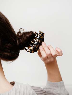 The perfect clip for effortlessly styling your hair into a sleek and stylish look. Made from acetate, this material is known to reduce hair breakage and split ends, making it a safe and elegant alternative to a simple hair tie. Available in a variety of neutral colors to complement any look.