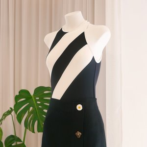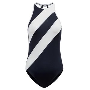 The Serra is inspired by a sport's swimsuit, with its performance- inspired halter neck style, low rise scoop back and medium coverage. It features contrast seamed front panels and clasp fastening at neckline. Self lined. Made in Turkey of Italian fabric with UPF 50+ protection. 80% polyamide, 20% elastane. This item runs true to size. Size S on mannequin.