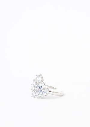 Silver-tone open-band rhinestone cluster ring. Features several rhinestones at the face each held with tonal rounded-tip stems. One Size 100% Brass Rhinestone Imported