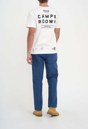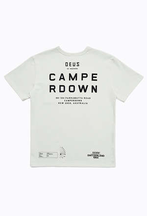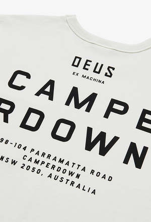 Camperdown: the unremarkable (but much loved) suburb of Sydney where this whole Deus caper began. As an ode to our roots, we charged celebrity shift designer Matt Willey with casting his wares over a tee honouring our humble origins, and he didnt disappoint. The Camperdown Address Tee is a box fit t-shirt with a contrast pocket, and our original, still standing HQ address printed on the back. Made from a 50/50 Cotton/recycled Cotton blend. - Box Fit T-Shirt With Pocket And Back Prints - 50% Recycled 50% Regular Cotton Jersey Fabrication - Heavy Enzyme Stone Wash