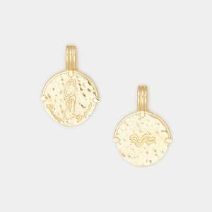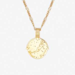 Portrayed through the tangible magic that is the female form, these pendants feature the zodiac signs as drawn by Kaia Etezadi for Deux Lions Jewelry. Together, Kaia and Deux Lions bring your horoscope to life through the essence of a woman, as a fierce and powerful goddess. She may represent you, or she may represent who you choose to have looking over you, guiding you from way up in the stars. These handcrafted unisex necklaces are adorned with the universal zodiac sign on the backside. DETAILS - 14k gold vermeil - 16 inch chain (model shown wearing 18 inch chain) - Pendant size 1.4cm x 1.4cm - Packaged in glass tube with cork top - Handcrafted in Montreal Note: gold vermeil will eventually evolve to its sterling silver base over time, varying from months to years depending on skin type and wear.