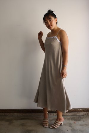 A-line dress with adjustable straps. The ric-rac band all around the chest adds character. 50% linen/50% viscose Amanda is 5'5" wearing the M 20% off - was $274 DIARTE is designed by Ana Diarte and produced in Spain.
