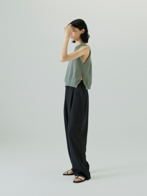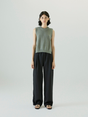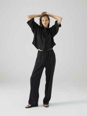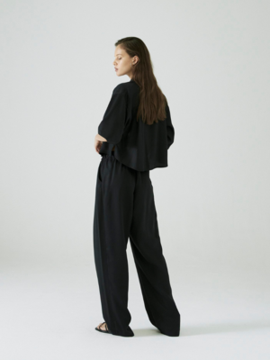 Relaxed wide-leg trousers with front pleats and elastic waistband made in heavy tencel fabric. Shown with the Sun Top in Artichoke and the Neus top in black tencel. Made with 100% Tencel in Spain. We recommend hand washing or washing on cold water/delicate. Do not tumble dry. Do not bleach. Iron in low temperature. Can be dry cleaned. Model is wearing a size small. ABOUT DIARTE Diarte is a clothing brand creating made to last garments for modern everyday living, 100% ethically made in Spain. Their collectsion of elevated basics is zero waste and produced by local family-run factories using natural and sustainable fibers, largely sourced in Spain and Italy. The brand is inspired by heritage knits and craftsmanship techniques and the beauty of art and architecture to create minimalistic silhouettes and contemporary style for conscious wearers. For Diarte, the meaning of ethics goes beyond doing no harm; it is a way to understand life.