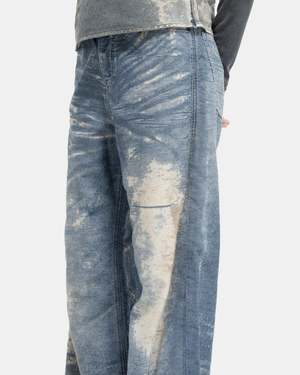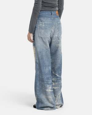 Diesel 1996 D-SIRE-FSF Jeans in Blue The 1996 D-SIRE-FSF Jeans have a wide, straight-leg silhouette with a high-waisted fit. The pair are made of a cotton-blend denim with patchy abrasions creating unique distressed character and pockets of sheerness. The jeans have a 5-pocket construction, a button-fly, belt-loops, and a brand patch at the rear. - 84% Cotton, 16% Polyamide. - Made in Tunisia. - Hand wash cold, dry flat. Li is 5'9 (175cm) and is wearing a size 24.