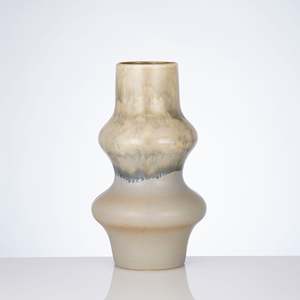 This vase features a sculptural silhouette and a reactive glaze finish, making each piece truly one of a kind. The soft, earthy gradient flows naturally over its curves, creating a striking blend of texture and tone. Designed to be a statement piece, it complements a variety of interior styles, adding an artistic and organic touch to any space. Whether displayed on its own or paired with botanicals, its reactive glaze ensures a one-of-a-kind presence. Product Details Dimensions: 8 Dia x 15 H Material: Ceramic Finish: Reactive glaze due to the nature of the glaze, no two pieces are alike Watertight: Yes Care: Clean gently with soft, dry cloth; use damp if needed (water only) Origin: Ethically and sustainably handcrafted in Portugal.