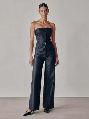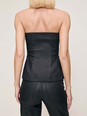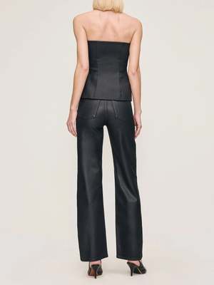 Our Bustier is a form-flattering, strapless style featuring a button-front closure. Black Coated is a wax coated, true black denim with a leather-like look. It features silver zipper, tonal stitching and clean finishing. Measurements taken from Size S: Length: 16.75" Waist Circumference: 33" Bottom Opening: 39" DL Airbrushed creates a smooth and sculpted effect by combining high-retention stretch technology with certified cotton that looks airbrushed but maintains flexibility. Fabric Detail: 71% Cotton, 27% Polyester, 2% Lycra