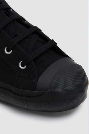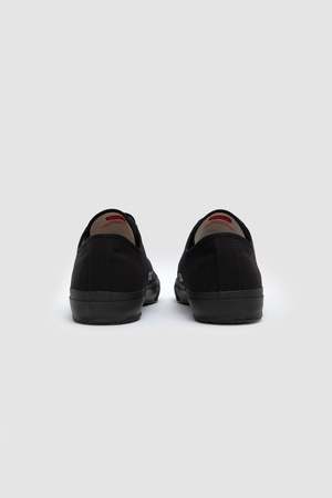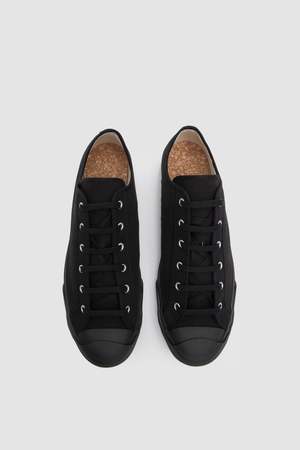 The Doek Court sneakers are handcrafted canvas shoes inspired by classic tennis designs. They feature open lacing and a natural cork footbed, offering comfort, durability, and a modern take on the derby style.