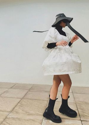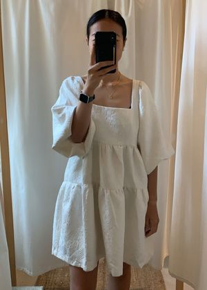 - White babydoll dress - 50% silk, 50% cotton - 100% silk lining SIZE NOTES - None SUSTAINABLY MADE - From Dona Lim (Makati, Philippines) - Dona defines her style as well-made luxe pieces, that are not so trend-focused, but staples that would last a lifetime. This she believes encourages the industry to move away from the hyper-trend driven, fast-fashion approach to apparel, towards sustainability. Hence, She prefers to use natural and more sustainable, eco-friendly fabrics. - Sustainable Values: #3: Sustainable materials, #7: Safe, livable, dignified employment