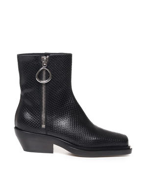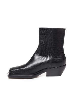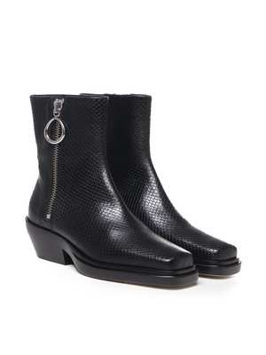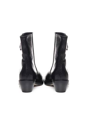 Low campers with a square toe and side zip featuring a nickel puller. Crafted in python effect leather. Made in Italy. Color: Black Composition: 100% Calfskin