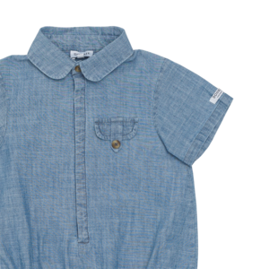Summer blue skies! Get ready for long summer escapes in the sky blue Clode Bodysuit. Made from 100% organic cotton, it features elasticated leg openings for comfort, a decorative front pocket, and concealed snap fasteners along the front and crotch. Woven fabric Main: 100% organic cotton (GOTS) Made in Portugal.