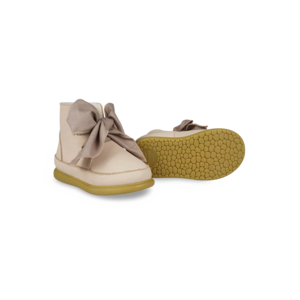 The Wisi Organza Toddler Shoes are the perfect companion for outdoor adventures, offering just the right support for those first steps. The flexible outsole with a slightly elevated heel provides enhanced support. The adjustable organza laces ensure a snug fit around the ankle, while the reinforced structure, particularly around the heel, provides the necessary support and stability for your little one's growing feet. Made from 100% premium leather. Lining: 100% Sheep wool. Upper: 100% Leather. Laces: 100% Cotton. Outsole: 100% Rubber. Made in Indonesia.