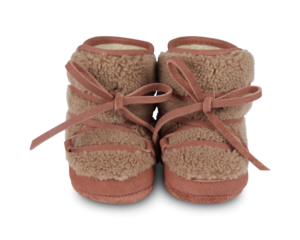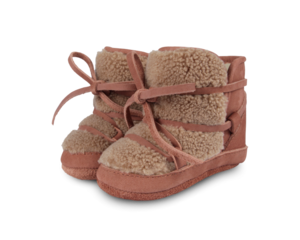 Lets go to the North Pole! The Cassi Booties are perfect for the colder seasons. Let your little one enjoy nature and look adorable at the same time in these beautiful baby boots. The uppers are made of warm faux sheep fur, and the leather laces ensure these boots stay firmly on during little adventures. These boots are true to size; if in doubt, choose one size up. Type: Baby footwear (baby booties) Chinese HS code: 6403911190 Materials / Composition - Upper: 100% Leather - Detail and lining: 100% Polyester (warm faux sheep fur) - Outsoles (size 1224M): 100% Rubber Care / Construction - Upper: leather - Lining: textile - Outsole: other materials Gender: Girls