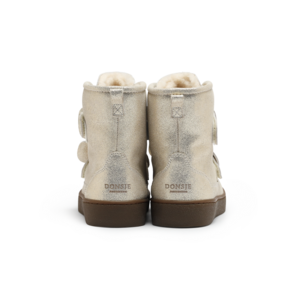 These exclusive kids boots feature adjustable velcro straps for a cozy and secure fit. Soft on the inside and durable on the outside, theyre perfect for cooler days and stylish adventures. Upper: 100% Leather. Lining: 100% Sheep wool. Outsole: 100% Rubber. Country of origin: China.