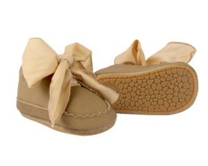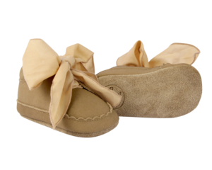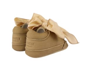Sweet tiny steps! The Lonny Sneakers by Donsje are the cutest and most comfortable shoes for your little girl's first steps. They are made from the softest premium leather and finished with small wavy edges. A beautiful chiffon bow gives a stylish finishing touch. Quality Outsoles (size 1224M): 100% Rubber. Upper and Lining: 100% Leather. Care Do not wash. Do not bleach. Do not tumble dry. Do not iron. Do not dry clean. Category: Baby Footwear / Baby Sneakers. Gender: Girls. Made in Indonesia.
