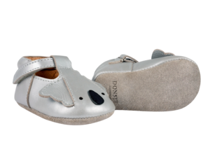 Step into style! The Blinc baby shoes, in soft metallic leather, are the perfect companion for your little one this summer. The adjustable velcro fastening T-bar straps ensure these sweet little shoes stay in place and support little feet, while the signature Donsje koala character adds a touch of summer charm. Type: Baby footwear Quality Upper and Lining: 100% Leather. Outsoles (sizes 12-30 M): 100% Rubber Country of origin: Indonesia