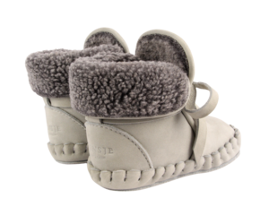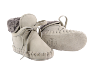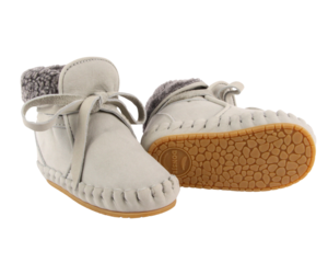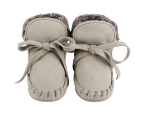 Warm and cozy booties for your little one's outdoor adventures. These handmade moccasin-style baby booties are cut from 100% premium leather and are easy to slip on and fasten thanks to the leather laces. They are lined with soft faux fur to keep tiny feet warm in cold weather, making them an autumn/winter wardrobe favorite. Upper: 100% premium leather. Lining: 100% faux fur. Outsole (sizes 1230M): 100% rubber. Item number: 1022200. Made in Indonesia.