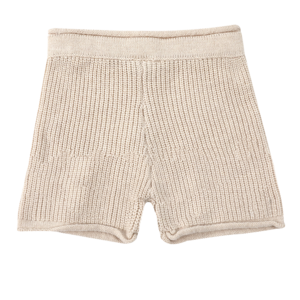 The Wes Shorts by Donsje are soft knit shorts for children. Main: 33% Viscose, 23% Recycled Nylon, 20% Cotton, 20% Merino Wool, 4% Cashmere. Suitable for multiple seasons. Made in China.