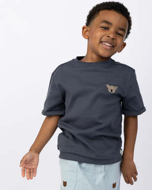 Koala & comfort. The slip-on Jarne T-shirt, adorned with an adorable embroidered Donsje koala character, is a summer staple for your little one's wardrobe. It pairs well with almost anything and is designed for everyday wear. Fabric & Composition - Main: 100% organic cotton - Detail: 95% organic cotton, 5% elastane (GOTS certified) Care Machine wash at 30 C. Do not bleach. Do not tumble dry. Iron on low heat (max 110 C). Do not dry clean. Made in Portugal.