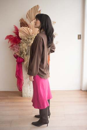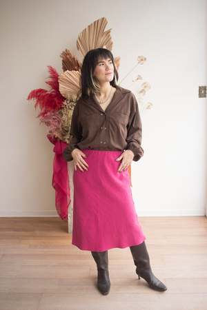 The Coastline Bias Skirt by DorsaLi is an easy midi skirt designed for everyday summer life, from running errands in the city to slow days away. Cut on the bias in a heavyweight European flax linen that has a fluid shape and allows the skirt to move naturally with the body. The soft elastic waist sits comfortably at the waist or slightly lower, making it a practical and versatile piece to wear often. This skirt fits true to size and has an elastic waistband. We recommend ordering your usual size. 100% Linen (European Flax) - Midi length - Elastic waistband - Can be worn mid or low rise - Bias cut Pre-washed fabric. Hand wash cold, lay flat to dry. Press or steam on medium heat inside out. Made in Montreal, QC. Also available in Sunbeam Stripe.