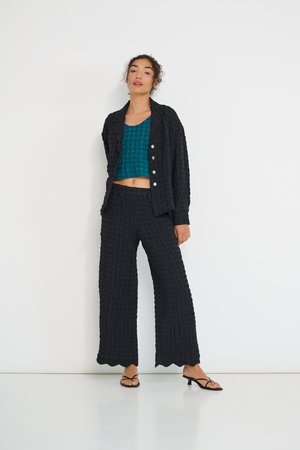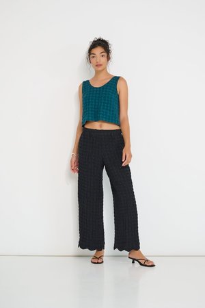 The Voyage Pants from DorsaLi offer an elevated, effortlessly chic look and can sit high or low on the waist with their flexible elastic waist. Made from a lightweight, textured linen and viscose blend that resists wrinkles, they are designed to stand the test of time and make an ideal travel companion. Sizing Notes: These pants fit true to size and have an elastic waist. We recommend ordering your usual size. 64% Linen, 36% Viscose (Eco-Tex Certified) - Scalloped hem - Side pockets - Elastic waist Hand wash inside out in cold water, lay flat to dry. Press or steam on low heat inside out if needed. Fabric is pre-washed. Made in Montreal, QC.