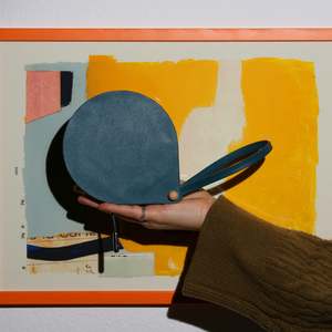 Ships on Nov.27 Detail Mini pouch with zip closure Premium smooth grain Italian aniline leather, satin finish (both Exterior and Interior) Nickel-plated iconic beams, and zip ends Hand-sculpted and finished solid birch wood sphere nuts Premium grade Swiss zipper Leather strap with center stitching Dimension 5 * 5 * 1.1, Strap drop 5.5 (inch) 127 * 127 * 30, Strap drop 140 (mm)