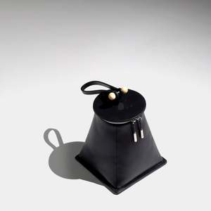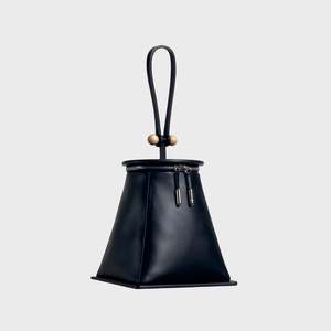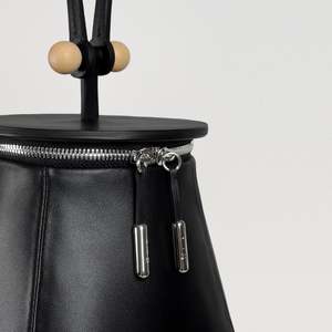 Detail Tote bag with zip closure Black smooth grain Italian bovine leather Black microfiber Chamude lining Nickel-plated iconic pillar and zip ends Hand-sculpted solid birch wood detail Strap handle with center stitching Dimension 6 * 7.4 * 6, Strap drop 5.5 (inch) 154 * 190 * 154, Strap drop 140 (mm)