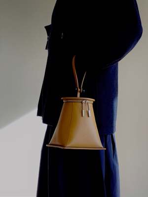 Detail Tote bag with zip closure Caramel smooth grain Italian bovine leather Caramel microfiber Chamude lining Nickel-plated iconic pillar and zip ends Milled and nickel-plated satin black solid metal detail Strap handle with center stitching Dimension 6 * 7.4 * 6, Strap drop 5.5 (inch) 154 * 190 * 154, Strap drop 140 (mm)