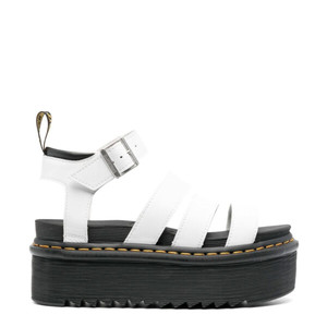 Dr. Martens tough sandal built on their tall but lightweight Zebrilus platform sole. A padded collar and SoftWair memory foam footbed keep you going all day. Constructed with durable Hydro leather. Marked as Dr. Martens with their iconic yellow stitching and heel loop. Adjustable buckle strap at the ankle Hydro is a smooth PU-coated leather with a matte finish SoftWair memory foam footbed Platform height: 2 3/8 in Heel height: 3 in