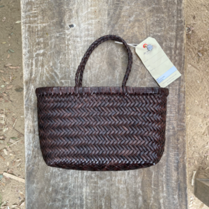 DRAGON MINI FLAT GORA SIZE : - Width : 11.8in / 30cm - Length : 6.6in / 17cm - Handle drop length : 3.1in / 8cm DESIGNED, BELGIUM HAND MADE IN INDIA BUFFALO LEATHER A matching cotton drawstring bag is available. No two pieces are alike, and they just get better with age since the leather will develop a natural patina over time. Dragon specializes in handcrafted woven-leather bags that age beautifully. Designer Craig Wright employs a team of artisans who use traditional weaving techniques to create elegant styles. We are a group of Artisan Leather weavers. Each bag is entirely crafted by hand. This product has been handcrafted, so no two pieces are alike. If you find any curve in the weaving or two tone shade in color, these are due to our unique process and not a manufacturing flaw. When this leather becomes wet, there may be slight de-coloration or transfer when rubbed. We use natural dyes in coloring of our straps and the irregular tones is part of the charm of this product. Over time this bag will age and develop a natural patina that only traditional made leather will give."
