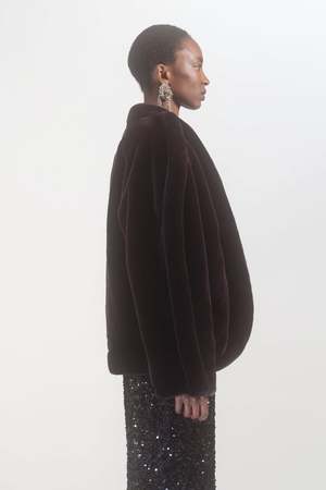 Dries Van Noten Faux Fur Jacket - Navy. Photos in brown are for reference only.