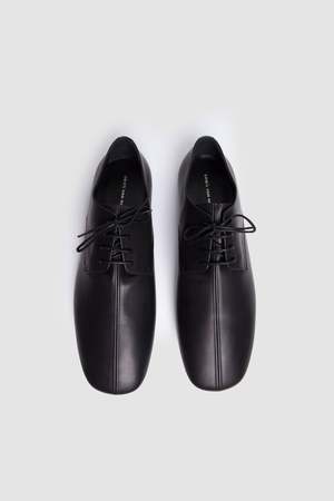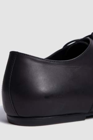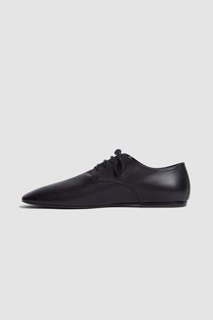 Leather Oxford shoes in a contemporary design, featuring central topstitch accents and a slim, flat leather sole for a sophisticated look.