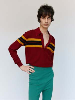 The Bordeaux Maona Sweater by Dries Van Noten is a viscose and polyester knit top from the shirts and tops collectsion.