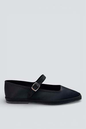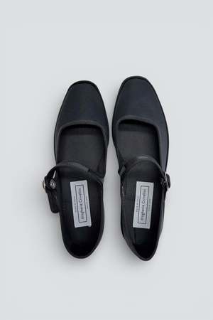 Black Satin Square Toe Mary Jane from Drogheria Crivellini. Features adjustable strap with squared toe. Made in Italy.