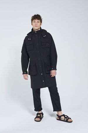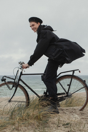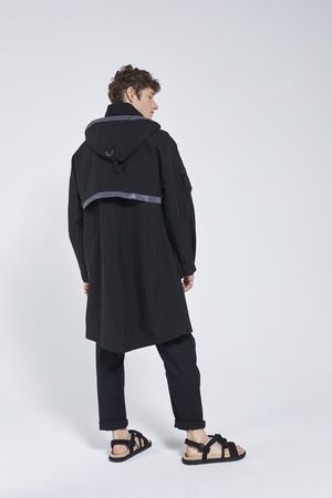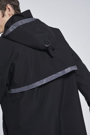 Unisex Marila Raincoat is an oversized raincoat made with a waterproof, windproof, and breathable recycled polyester outer shell and a soft recycled lining. The raincoat features four large front pockets and one smaller sleeve pocket with a unique limited edition Ducktail Rainwear origami logo2. The raincoat boasts several functional details: a reflective peak on the adjustable hood and back vent, a high collar with a removable mask, and adjustable metal buckles. The raincoat is lightweight (1.25 kg). Seam-sealed waterproof 10,000 mm water column pressure. The model in the picture is 184 cm tall and he is wearing size M. Designed and made in Vilnius, Lithuania. The raincoat is a unisex straight fit. Keep in mind that the sizes are mens sizes. For men the coat has a generous fit, so if you are normally between sizes, we suggest you size up. Please check the SIZE GUIDE below to choose your size. By purchasing our items you are contributing 2% of your order to saving wild ducks and their habitat in Lithuania and we are so thankful for that! MATERIAL Shell 100 % recycled polyester; detailing reflective material; lining 45 % viscose, 55 % recycled polyester. CARE The product should be hand-washed when needed. If using a washing machine in hand-wash mode, select low spin speed. A small amount of dirt can be easily cleaned using a damp cloth and soap (optional). Ironing temperature (shell) max 110C. Do not iron parts made of reflective material. The product can be dry cleaned. The product can be tumble-dried using low heat. Do not bleach. *Due to monitor differences, the actual colors of raincoats may vary slightly from what appears online.