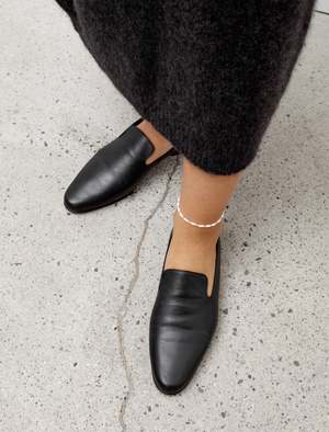 A simple slip on that will polish up any outfit! Clean lines and classic details make these Duan shoes a timeless addition to your collectsion. They offer a comfortable fit, and last but not least, buttery soft leather on the interior and exterior. They're finished with a low leather stacked heel. - Made in Italy - 100% Lambskin