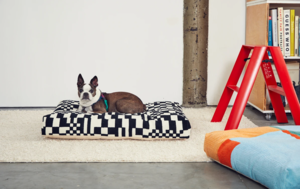 Embroidered dog bed in black and white Check print. 100% cotton canvas shell with acrylic/wool blend embroidery, poly insert, back zip. 36"x 27"x 4". Doubles as floor pillow and comes with insert. Wash bed cover alone and inside-out in cold water. Hang to dry. Spot clean recommended. Made in India. Not eligible for international shipping. Ellen from Dusen designs clothing with psychology in mind. Specifically, the brains reaction to visual stimuli. The result? A namesake label that focuses on universally flattering styles featuring happy, look-at-me prints that redefine retail therapy. The Brooklyn designer started Dusen in 2010 and has since expanded her contemporary line of womens wear into fashion for the home.