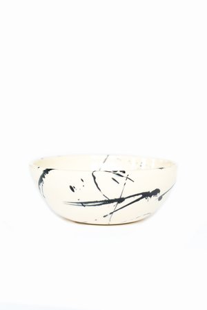 Made in LA by Earl Home Set of 4 ceramic, hand thrown small cereal bowls Available in Black Splatter pattern Dishwasher safe, Each individual bowl measures 6" x 6" x 2.5"