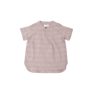 From East End Highlanders. Kurta style pullover cinched with a button fastening at neckline. - Unisex kid's shirt - 36% rayon 34% linen 27% cotton 3% polyurethane - Color: Brown Plaid - Short sleeves - V-neck - Single button closure at center front - Rounded hem, longer in back - Relaxed fit