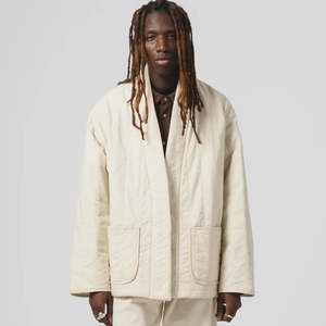 Inspired by traditional Japanese design, the Edo Jacket by Eat Dust takes the relaxed shape of a kimono and reimagines it as a long, oversized jacket. Made in Portugal from 100% quilted cotton, it offers both warmth and structuremaking it the perfect outer layer for cooler seasons. Features: - Kimono-inspired silhouette with a longer cut for a modern, oversized fit - Padded cotton construction adds warmth without feeling heavy - Two large front pockets for easy storage - Easy to layer over t-shirts, knitwear, or hoodies - Crafted from premium 100% cotton in Portugal Model Info: Isa is 178 cm tall and wears size Small. Bazou is 185 cm tall and wears size Medium. Measurements (in cm): XS S M L XL XXL Total Length: 64 65 66 67 68 69 1/2 Chest: 56 58 60 62 64 66 1/2 Bottom: 47 49 51 53 55 57 Shoulder Across: 56 57 58 59 60 61 Sleeve Length: 55 55.5 56 56.5 57 57.5 Made in Portugal.