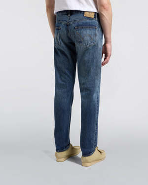 The Regular Tapered Jeans are a modern take on classic Japanese denim. They are cut from 14oz Kurabo Recycle Red Selvage Denim in a blue dark used wash for a worn-in look, a softer hand feel, and subtle fluidity in the structure. They feature a regular tapered fit, mid rise, five-pocket design with a button fly, and are finished with a 100% pulp paper patch on the back. Length available is 32 only. Julius is 184 cm tall and is wearing size 32/32. - 14oz Kurabo Recycle Red Selvage Denim - 100% Cotton - Regular Tapered Fit - Blue Dark Used - Mid Rise - 5-Pocket Denim - 100% Pulp Paper Patch on Back - Button Fly - Made in Japan - Item Number: I030675_01_6J Each denim product will naturally undergo color fading over time as a result of the unique indigo dyeing process. To maintain the lifespan of your jeans: - Wash only when necessary. - When washing, always follow the care instructions provided on the care label. - Wash inside out, separately or with similar colors. - Be cautious with light-colored surfaces and clothing; denim may bleed when wet or dry. - May shrink up to 3%.