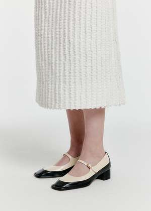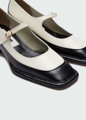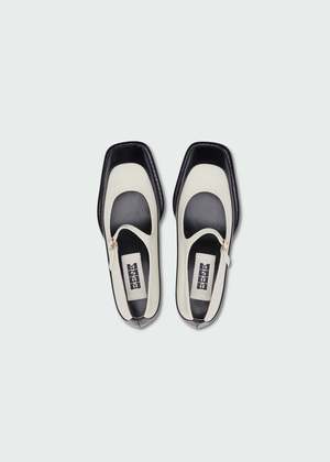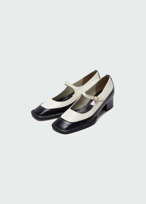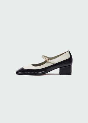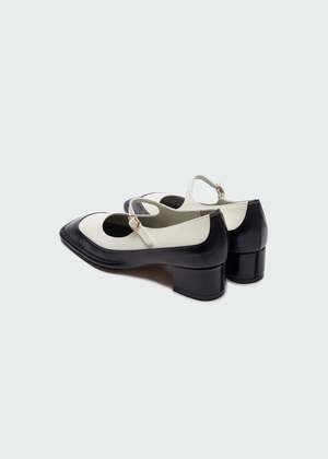 This classic pair is updated with a square toe, 4-cm heel, and a unique double-layer construction. The upper white layer and thing buckled strap is set in a soft and supple sheep leather whilst the layered bottom is crafted of a polished calf-leather for chic but durable wear. Upper 1: 100% cow leather. Upper 2: 100% sheep leather.
